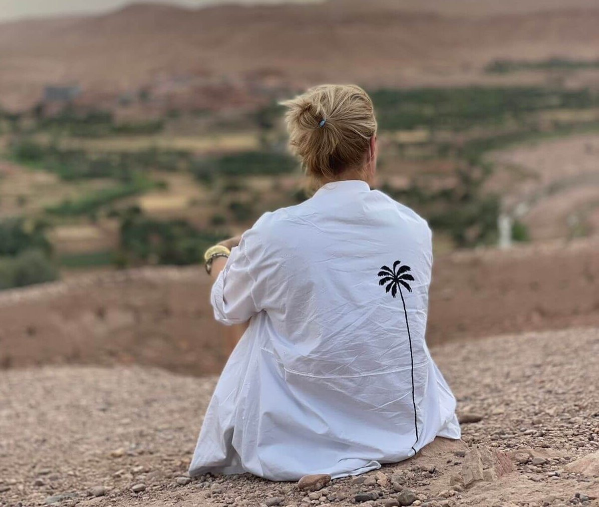 Al vele jaren mag ik mijn werk in Nederland voor Oilily combineren met mijn bijzondere werk in Marokko. Mijn mode achtergrond en voorheen mijn ervaring met styling van fotoshoots en interieur maken dat ik zo geniet in dit mooie land. Nog steeds inspireert het mij dagelijks. Op vele manieren! Mijn oog herkent schoonheid gemakkelijk maar een goed gevoel staat op nr 1 voor mij. Ik voel mij ontzettend bevoorrecht en dit maakt dat ik al het moois hier zo graag deel. soms zijn het dingen maar ook heel vaak de beleving. Het daagt mij uit om dit steeds weer te doen op een manier waarmee ik ook mijn reizigers verras. Meestal doe ik dit met een creative partner en natuurlijk Jalil die onmisbaar is met alles wat ik doe. Hij maakt dat ik 2 werelden kan verbinden. Dit keer doe ik het alleen. Echt een reis vanuit mijn eigen hart.